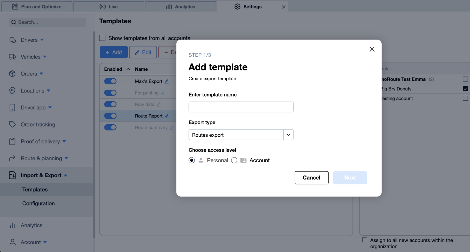 Niestandardowe szablony eksportu pozwalają tworzyć i zapisywać wzory danych do eksportu tras. Takie szablony pojawiają się w menu eksportu, umożliwiając szybkie, jednorazowe eksporty z zapisaną konfiguracją. W tym artykule dowiesz się, jak tworzyć, aktualizować i eksportować przy użyciu niestandardowych szablonów, a także jak zarządzać zarówno własnymi szablonami, jak i szablonami systemowymi dołączonymi do Twojego konta.